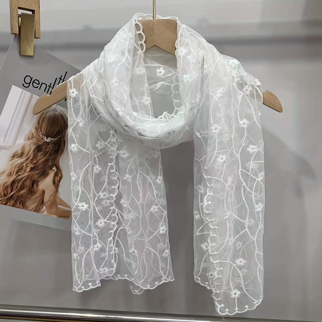 TEMU 우아한 꽃무늬 레이스 신부 베일 스카프 - 긴, 시스루 메쉬 헤드피스, 복잡한 꽃무늬 패턴, 결혼식 및 공식 행사에 완벽, 웨딩 액세서리 | 꽃무늬 레이스 디자인 | 시스루 메쉬 원단, 신부용 웨딩 드레스