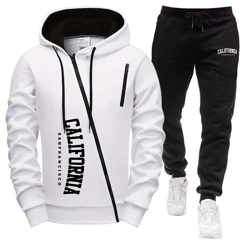 가을 겨울 보온 스포츠웨어 캐주얼 후드티 운동복 캘리포니아 프린트 남성 지퍼 후드 재킷 조거 팬츠 트랙수트