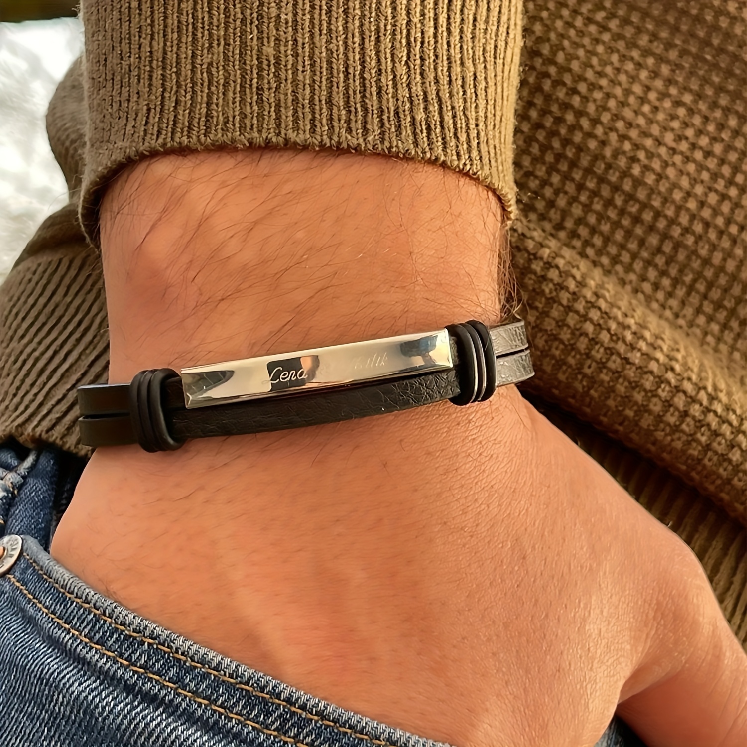 TEMU 맞춤 각인 남성용 팔찌, 남성용 개인 맞춤 인조 가죽 팔찌, 아버지, 아버지 날 아버지의 날 선물로 완벽, 1개