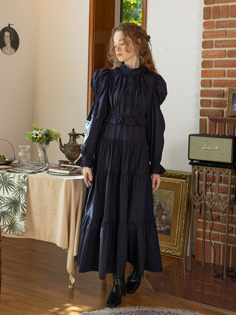 [프라우드마리] PM_Palace ruffle cotton dress_NAVY