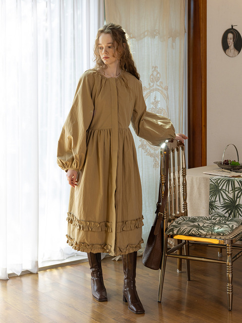 [프라우드마리] PM_Ruffle hidden button dress_BEIGE