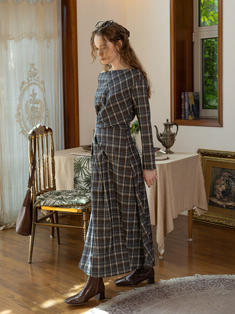 [프라우드마리] PM_Irregular plaid dress_BLUE