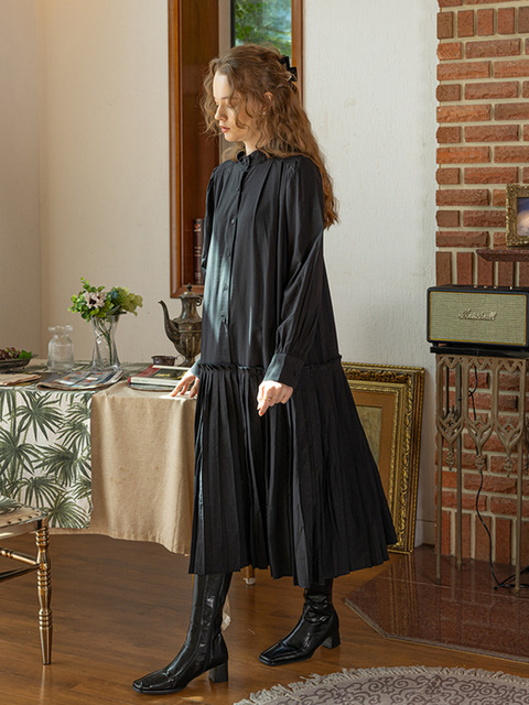 [프라우드마리] PM_Shirring velvet dress_BLACK