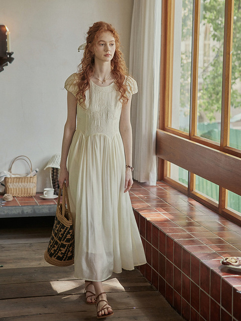 [프라우드마리] PM_Half embroidery puff sleeve dress