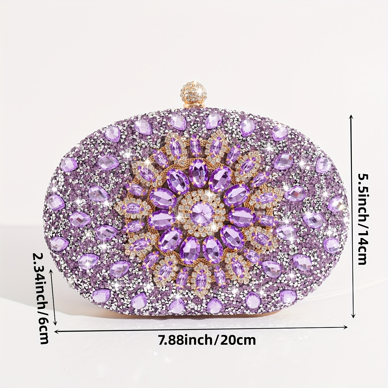 TEMU 1개 보라색 반짝이는 라인스톤 이브닝백, 오벌 클러치 박스백, 우아한 여성용 핸드백, 볼 파티백, 공예 가방, 이브닝 드레스백, 패셔너블 핸드백