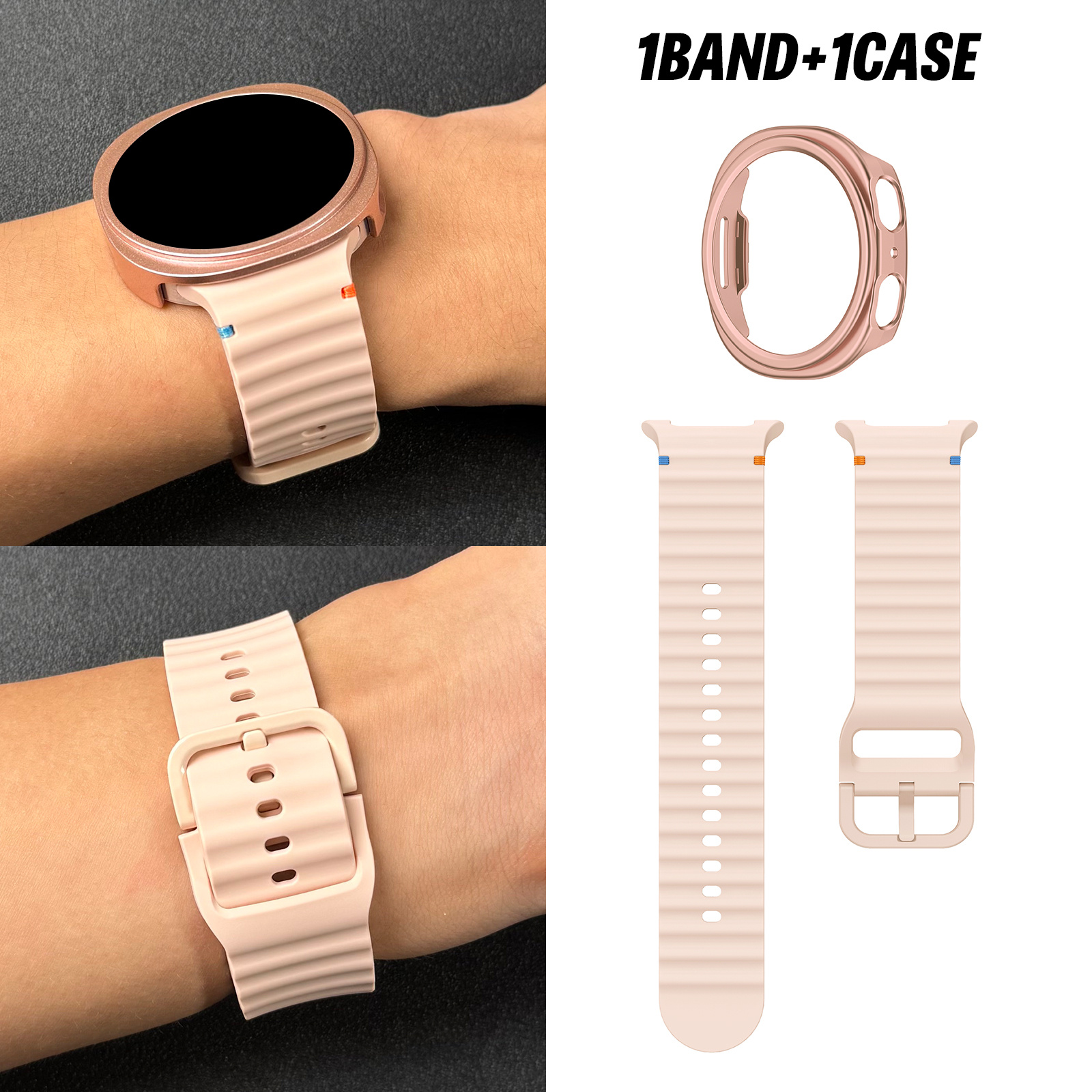 TEMU 2개입, 삼성 워치 8 웨이브 스티치 컬러풀 버클 스트랩 + 삼성 워치 8 세미 인클로즈드 할로우 케이스 40/44/46mm, 스포츠용 통기성, 땀 방지, 충돌 방지, 남녀 공용.