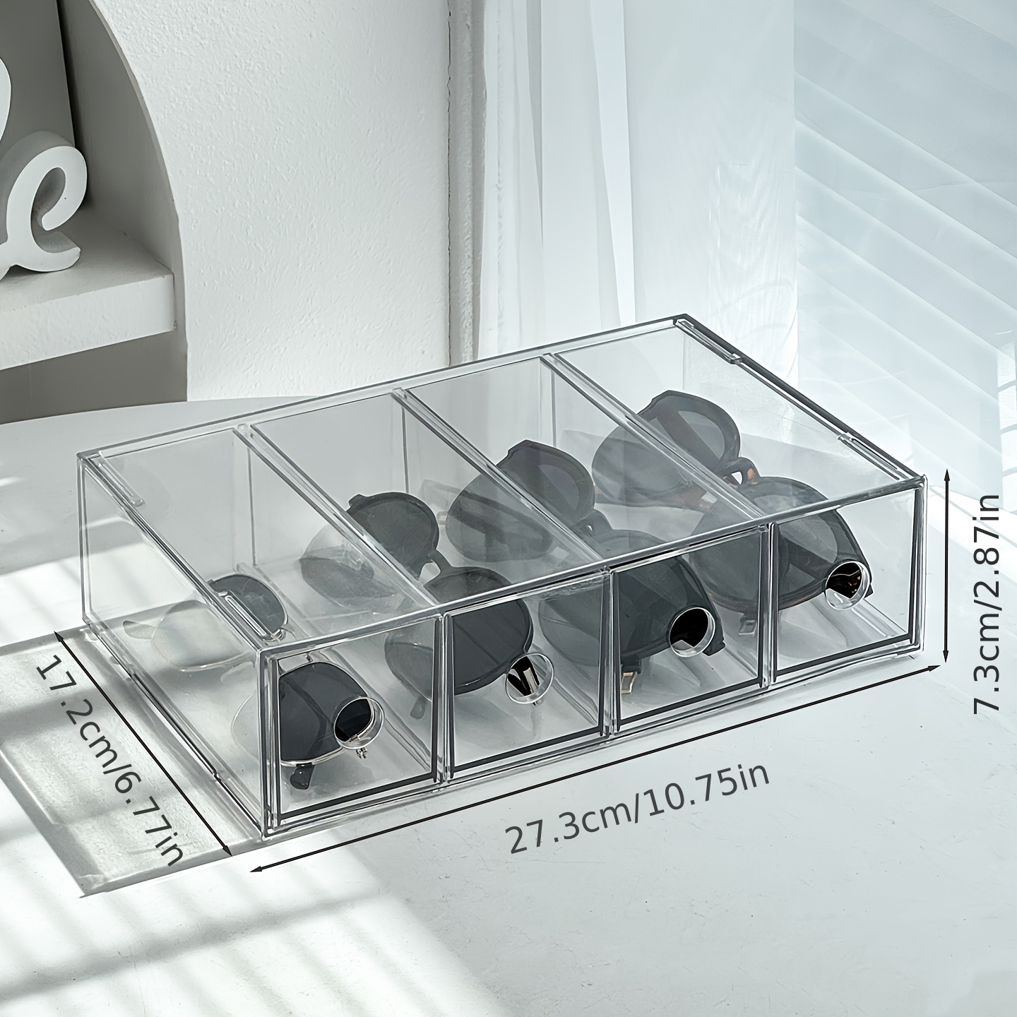 TEMU 4단 투명 아크릴 안경 정리함 - 서랍형 스택 가능 여성용 안경 케이스, 4구 디스플레이, 패션 안경, 독서용 안경, 원형/팔각형 프레임, 화장대 및 드레서 수납, 한국 스타일 액세서리 박스