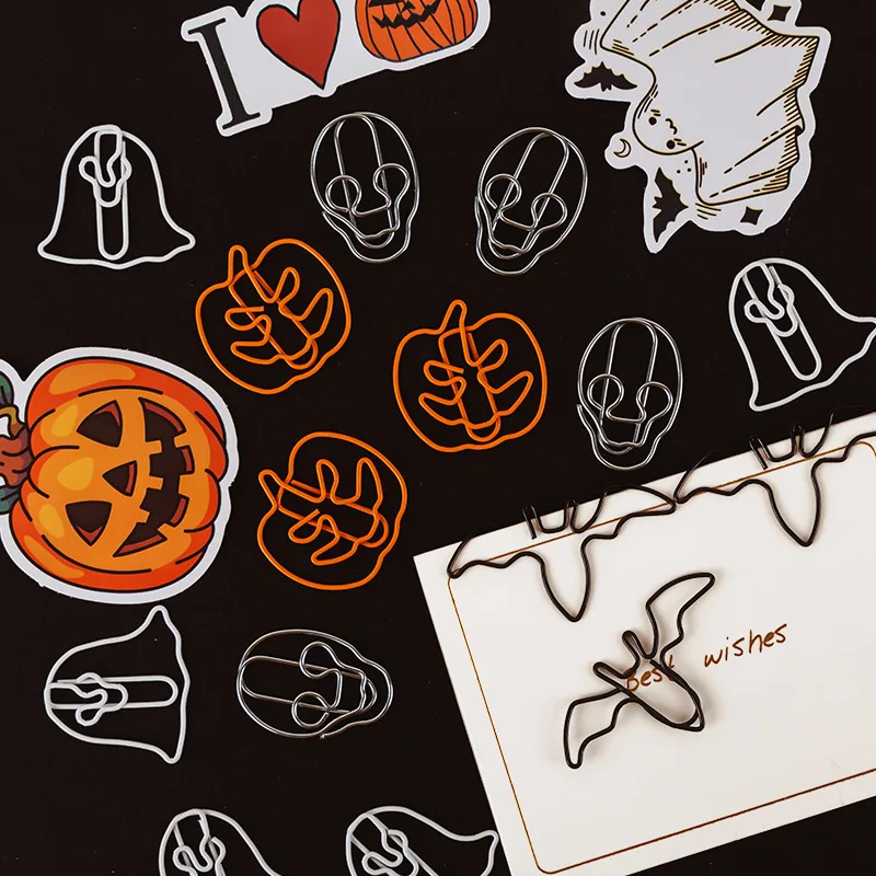 20/50개 할로윈 유령 모양 종이 클립 사무용 금속 호박 모양 박쥐 모양 종이 클립 페이지용 사무용품 금속 클립 문구류