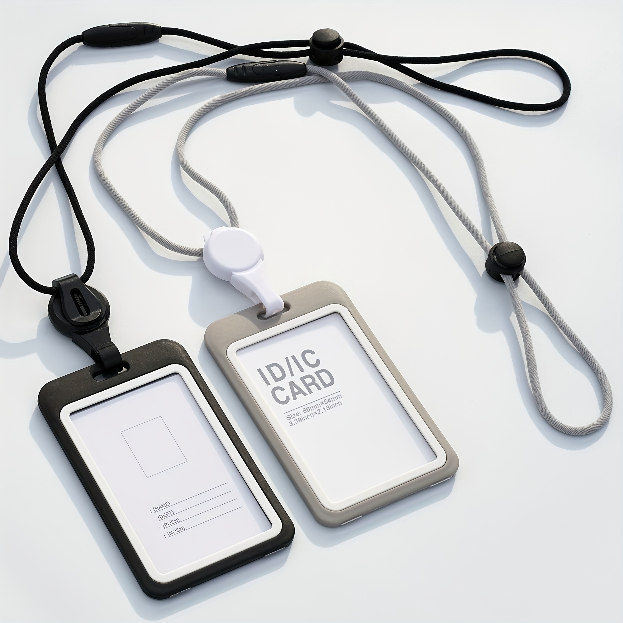 TEMU ID 카드 홀더가 있는 양면 투명 리트랙터블 랜야드 - 기업, 비즈니스 및 전시용 양방향 착용 가능한 작업 배지, 내구성 있는 PP 소재, 블랙 & 화이트 디자인, 직원 ID 카드, 명함 홀더, 세련된 액세서리, 견고한 구조, 배지 홀더, 직원 ID 목걸이, 남성용 카드 홀더|남자목걸이
