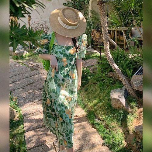 여름 에스닉 면 마 원피스 여 고급 허리 조임 루즈핏 날씬해 보이는 기질 린넨 스커트 개량 한복 일상복 나들이룩