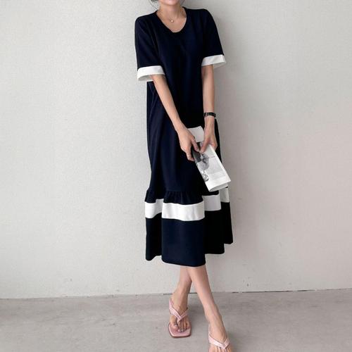 빅사이즈미시옷 여성큰옷 코코라인배색롱원피스 마