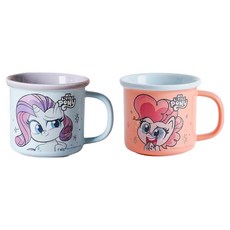 StarR 마이 리틀 포니 일러스트 세라믹 머그컵 2개입, 1세트, 블루 + 핑크
