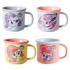 StarR 마이 리틀 포니 일러스트 세라믹 머그컵 4개입, 1세트, 블루+퍼플+옐로우+핑크