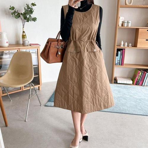 [신상오픈런]민소매 패딩원피스 하체커버 허리조절 깔깔이
