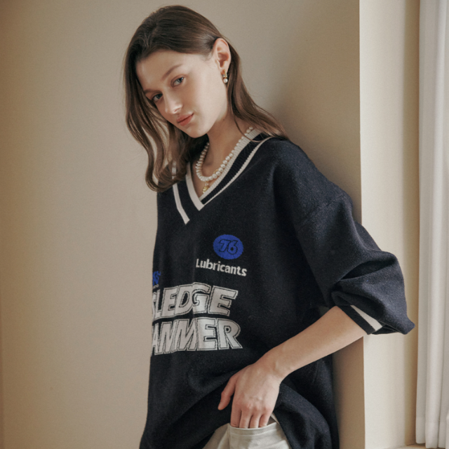 [마쟈] 부클 플라워 패턴 루즈핏 라운드넥 니트