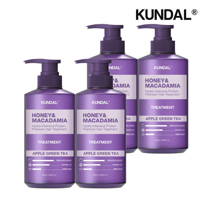 쿤달 쿤달 허니 앤 마카다미아 단백질 트리트먼트 애플그린티 500ml x4개