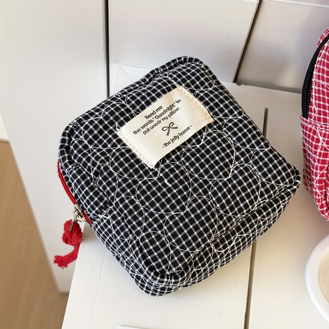 TEMU 하트 패턴과 체크무늬 디자인의 동전 지갑, 소녀용 생리대 정리함, 휴대용 소품 보관 가방