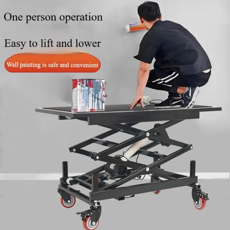 신형 전동 리프팅 스툴 접이식 이동식 인테리어 타일 트롤리 발 리프트 플랫폼 리모컨 포함