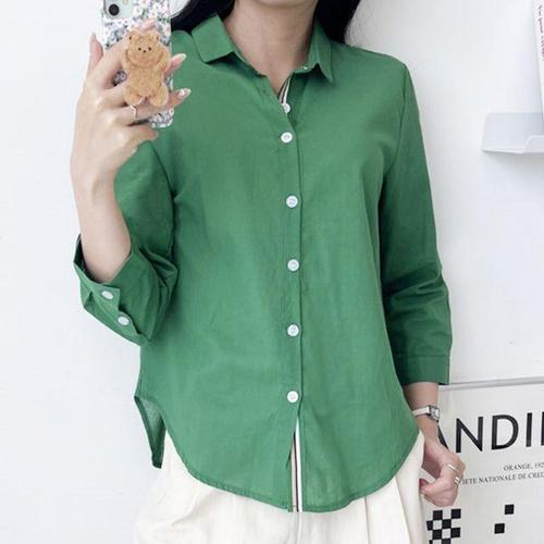 수워나 여성용 플랙스린넨 여름 린넨100% 셔츠 카라 브이넥 마 남방 긴소매 블라우스