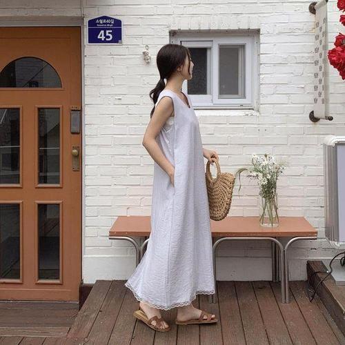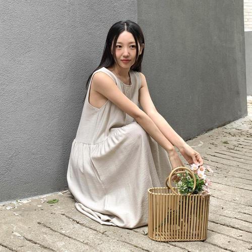 [다잇템_패션]여성 마원단 슬리브리스 롱 더블포켓 SS 원피스