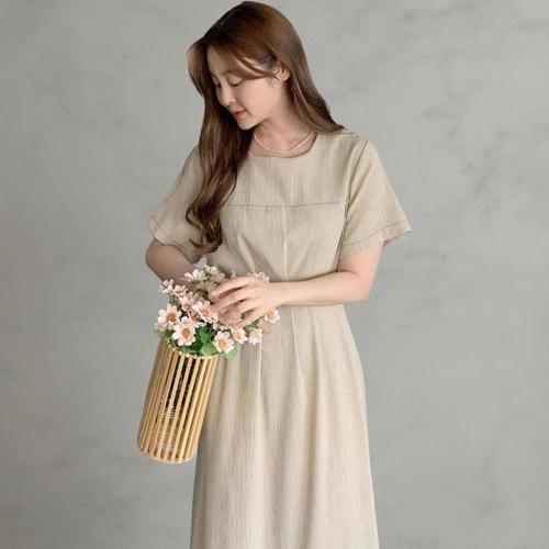 [다잇템]여성 잔주름 핀턱 롱 마원단 U넥 원피스