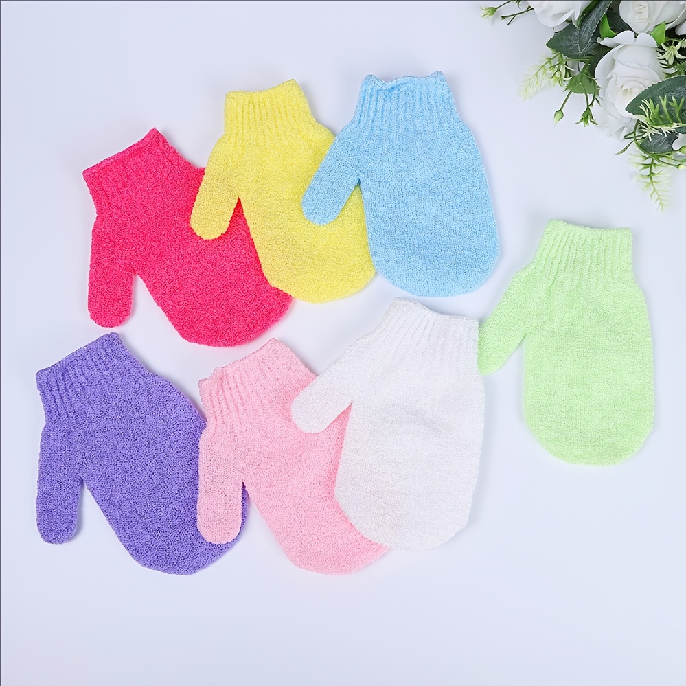 TEMU 7개 세트 목욕 장갑, 등과 바디 마사지용 스크러버, 연한 베이지 색상에 부드럽고 남녀 공용 샤워 스펀지, 남성 및 여성용 각질 제거 스크러버, 가정용 폼 바디 로션 및 자외선 차단 애플리케이션 장갑