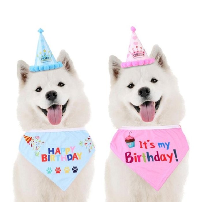 반려묘/반려견 생일 의상 - 모자 & 턱받이 세트 귀여운 스카프 파티 사이즈 조절 가능 반려동물 용품