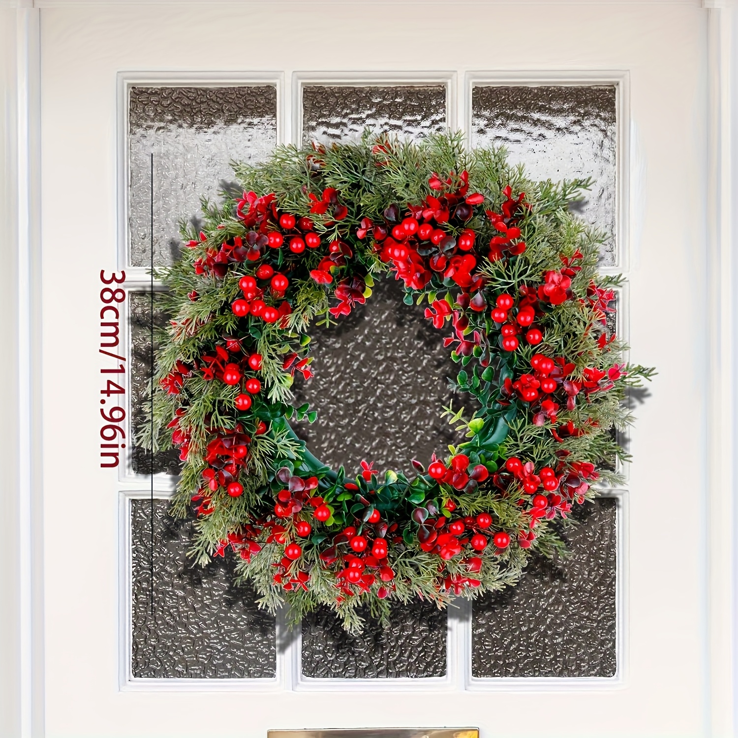 TEMU 14.96인치 리얼한 빨간색 베리 화환 - 천연 질감의 수제 겨울 화환, 유지 보수 불필요, 베리들이 밀집되어 있어 실내 및 실외 휴일, 크리스마스 장식에 적합 | 생생한 화환 디자인 | 섬세한 장인 정신