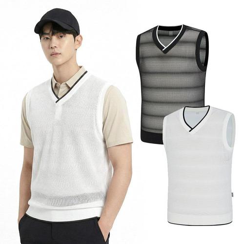 [비티알]비티알 남성 여름 전체 망사 통기성 요꼬 디테일 골프 조끼 2572VB873M
