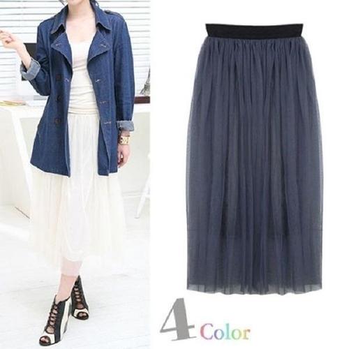 [옷자락]여성 롱 레이스 밴딩 레이어드 망사 스커트