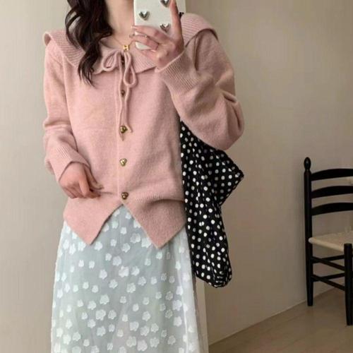 [기타브랜드]금장 버튼 포인트 케이프 니트 가디건