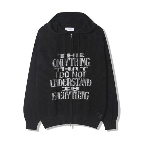 남자 메쉬 레터링 펀칭 코튼 니트 후드집업 RM-KN-Q086-블랙