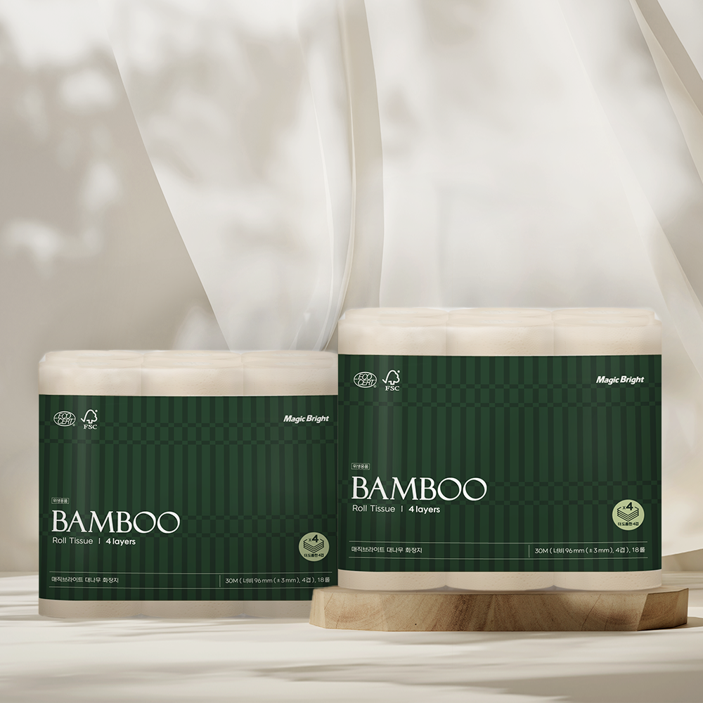 먼지없는 무표백 대나무 화장지 4겹 30m 18롤 x 2팩