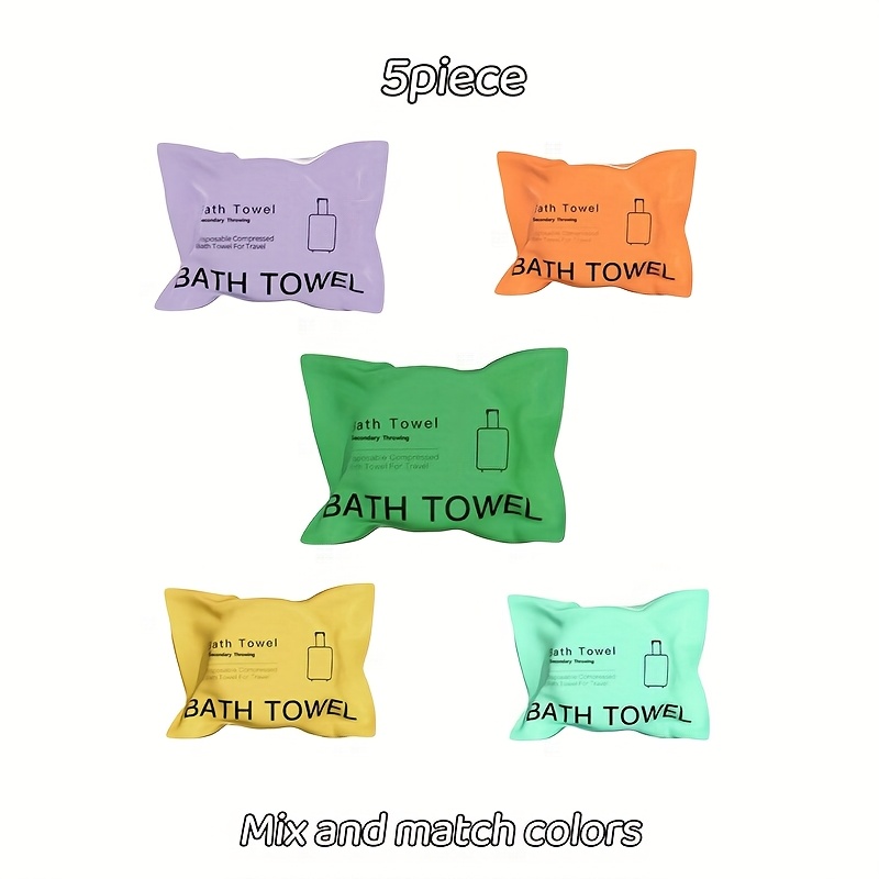 TEMU 70cm × 140cm 일회용 목욕 타월 5세트, 여행용 개별 포장, 압축 순수형, 여행용 호텔, 게스트하우스 및 기타 용품에 적합