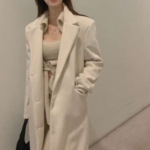 워너비뮤즈 / 하이퀄 맥시핏 아이보리 카라 싱글 울 롱 코트