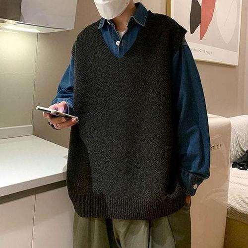 [모노무드]MMO 맨즈 오버핏 브이칼라 시즌 이너웨어트렌디 스웨터 베스트자켓 슬리브리스탑