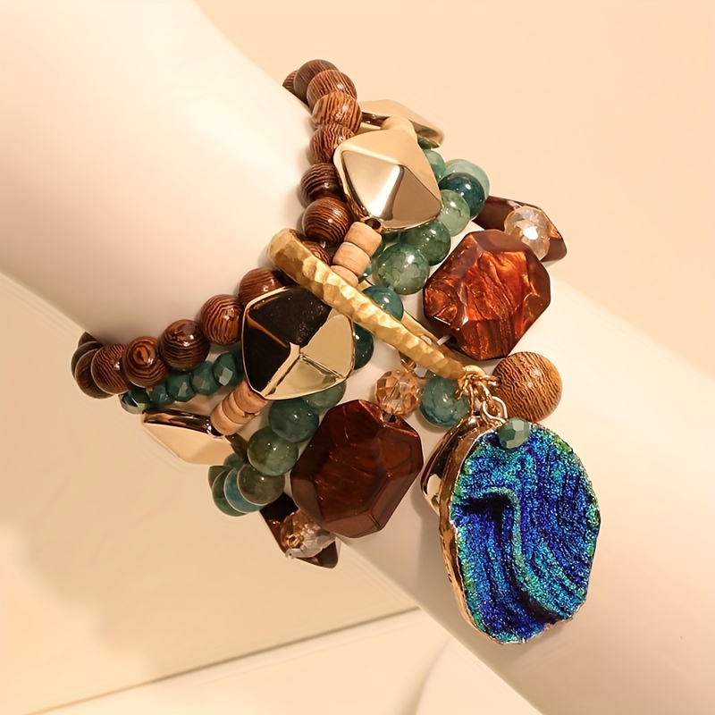 TEMU 1개 레이어드 비즈 팔찌 - 멀티컬러 (터키석, 브라운, 골드, 블랙, 화이트, 레드, 그린, 블루, 퍼플, 오렌지, 핑크, 클리어) - 레이어드 스택 가능 체인, 십대용