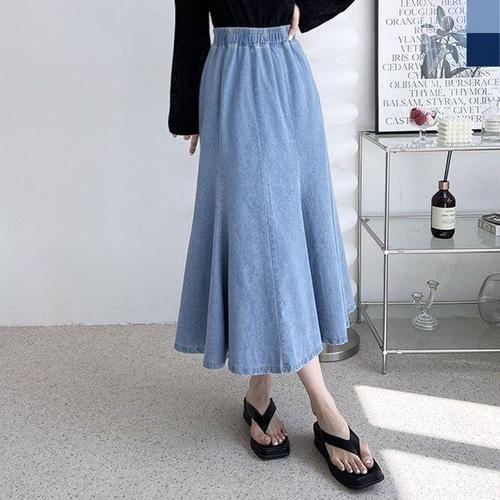 [에이치플러스몰]머메이드 청치마 밴딩스커트