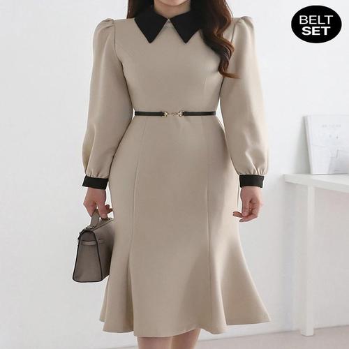 [모리스커밍홈][55-66]배색포인트 벨티드 머메이드 원피스_M2602OP009A