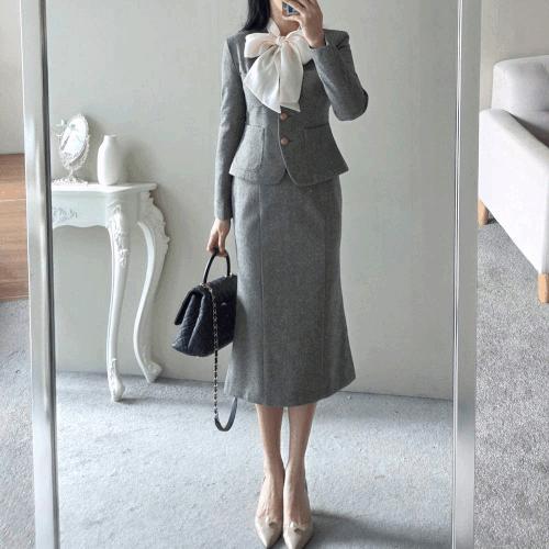 GGPX 스퀘어 니트 가디건 앤 머메이드 스커트 투피스 (GP1OP012F)
