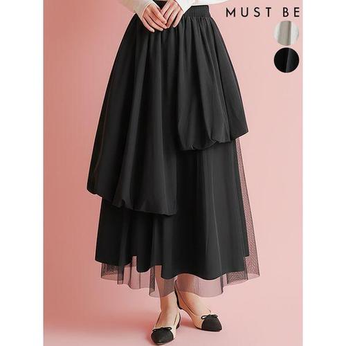 [머스트비]여성 샤 레이어드 언발 벌룬 스커트