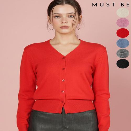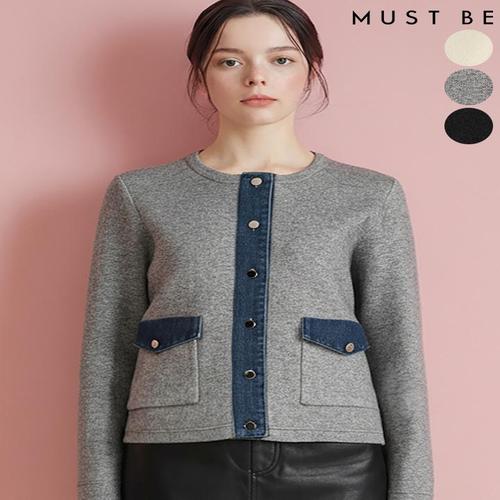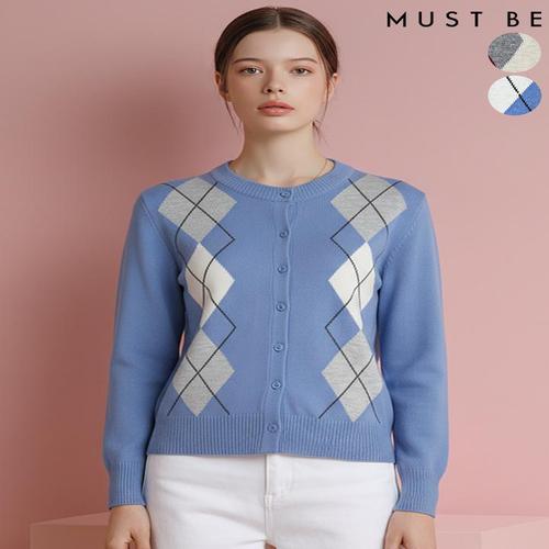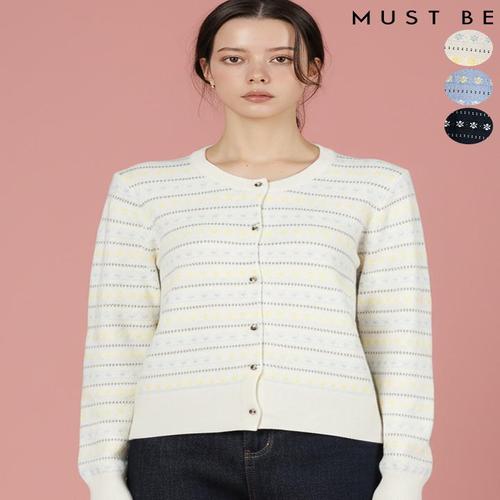 [머스트비]여성 울혼방 케이블 니트 라운드 가디건