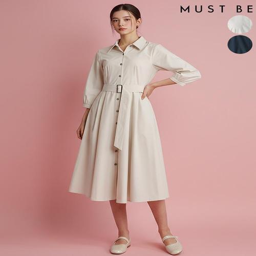 [머스트비]여성 벨티드 카라 셔츠형 원피스