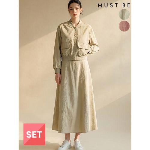 [머스트비]여성 보머 크롭자켓 플레어 롱스커트 셋업