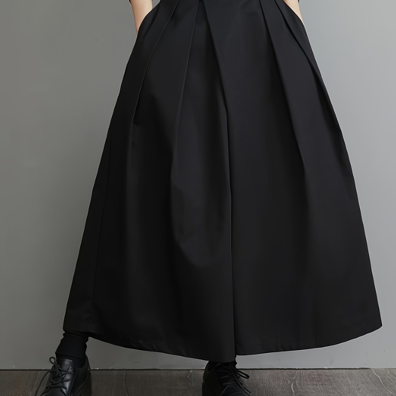 TEMU 플러스 사이즈 - 플러스 사이즈 - 여성용 플리츠 와이드 레그 팬츠, 하이웨이스트 디자인, 스커트-팬츠 스타일, 루즈핏, 플러스 사이즈, 9/10 길이|치마바지