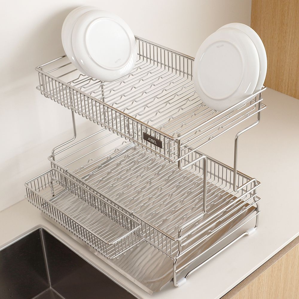 소벨 엠보형 연마제없는 올스텐 304 헤이븐 2단 식기건조대 물빠짐 쟁반형 베이직(+멀티바스켓)