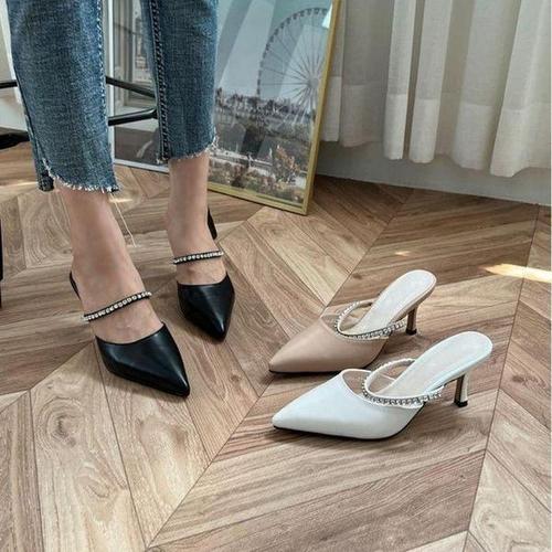 [셀러허브_여성트랜드패션]여자 메리제인 뾰족코 스틸레토힐 뮬힐 발등 스트랩