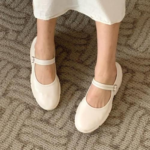 여성 메리제인 무지 버클 심플 플랫슈즈