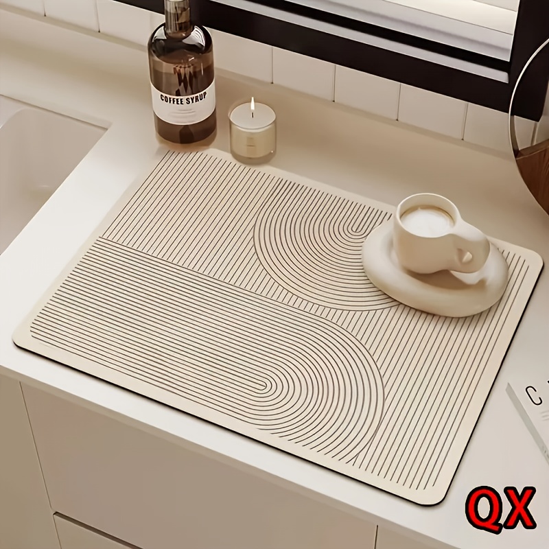 TEMU 초흡수 & 미끄럼 방지 기하학적 고무-규암 건조 매트 - 내구성 강한 빠른 건조 주방 및 욕실 카운터탑 패드, 커피 머신, 양념류용 | 모던 기하학 디자인 | 고무 건조 매트, 주방 카운터탑 매트