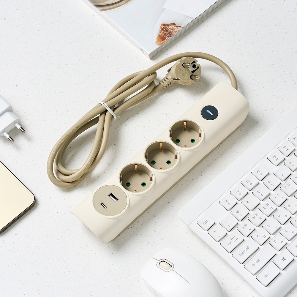 컬러 멀티탭 3구+1A+1C 베이지